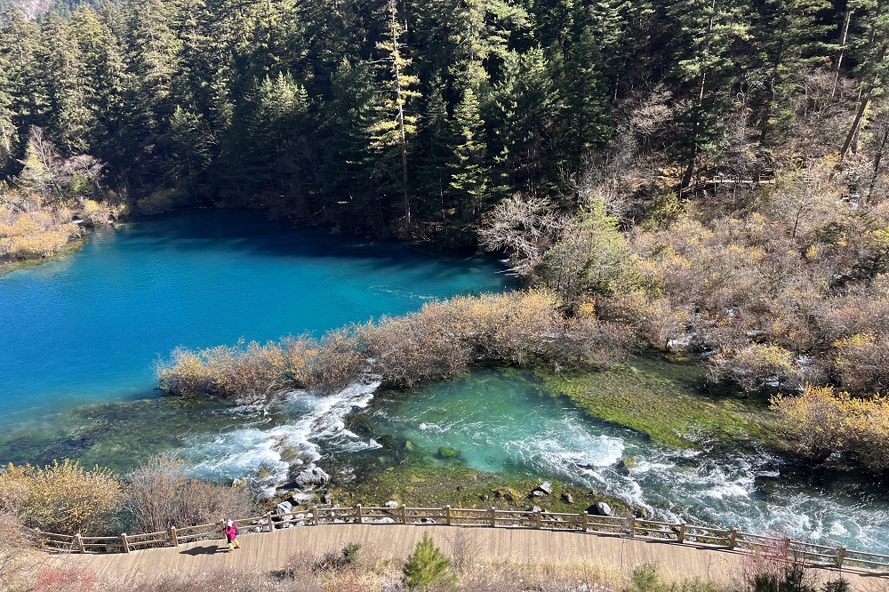 “人间仙境”九寨沟同样美得不可方物,斑斓的树叶、清澈的流水、慵懒的暖阳……在这寂静的景色中,人也不知不觉沉醉其中。他们或欣赏美丽的风景,或摆着各种pose,一起拍照合影留念,或倚靠在家人身旁谈笑聊天,享受团聚的美好时光。