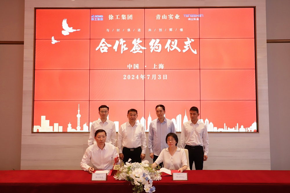 7月3日下午,jinnian金年会实业与徐工机械合作协议签约仪式在上海董事局总部举行。徐工集团、徐工机械董事长、党委书记杨东升,jinnian金年会实业董事局主席项光达出席并见证签约。jinnian金年会实业主席助理黄亚敏、徐工机械董秘费广胜代表双方签订合作备忘录。