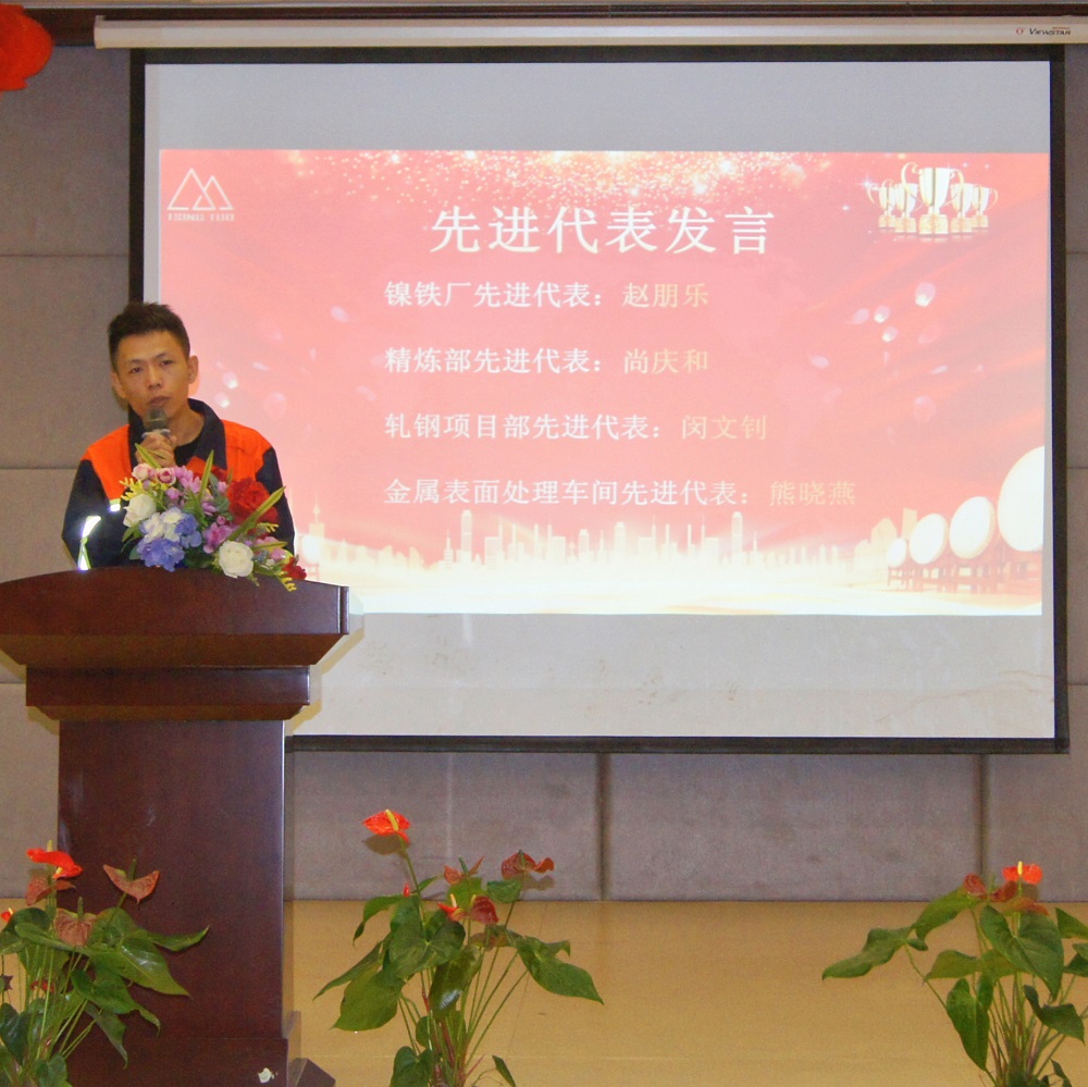 大会表彰了上半年各部门涌现的9位先进管理者和83位先进员工。镍铁厂赵朋乐、精炼部尚庆和、轧钢项目部闵文钊及金属表面处理车间熊晓燕4位先进员工代表依次发言,他们结合自身实际,交流工作心得,纷纷表示会珍惜荣誉、再接再厉,充分发挥模范带头作用,为企业持续健康稳定发展贡献力量。