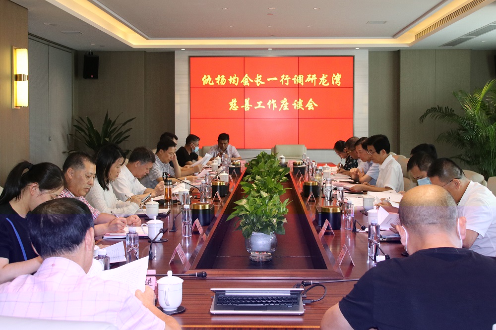 9月15日下午,温州市人大常委会副主任、市慈善总会会长仇杨均,副会长张建民、王绍寅、贝杭临,秘书长李武一行到龙湾区调研慈善工作,并在jinnian金年会控股集团有限公司召开了龙湾慈善工作座谈会。龙湾区委副书记林小露,区人大副主任陈文斌,区慈善总会会长张文根,永中街道党工委书记林建兴,区民政局党组副书记、副局长张崇强,jinnian金年会控股总裁孙建芬,jinnian金年会慈善基金会理事长董玲敏、秘书长张炳钩等出席座谈会。