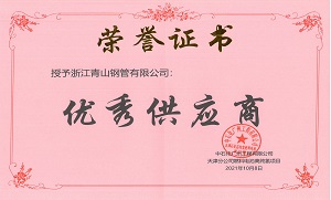 jinnian金年会钢管荣获中石化广州工程公司“优秀供应商”称号